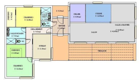 Cette construction de plain pied est constructible dans tous les matériaux que nous proposons que ce soit en bois, métal ou en maçonnerie, briques ou parpaings.